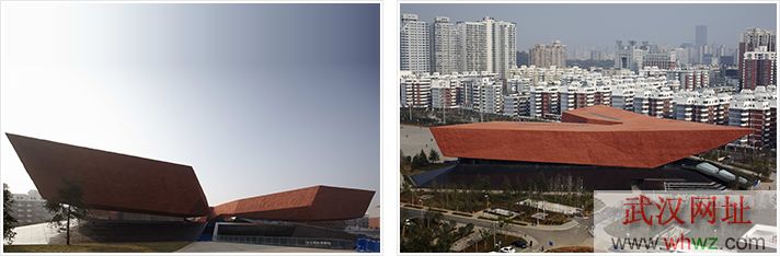 辛亥革命博物館的外形設(shè)計獨特,融合了中國傳統(tǒng)建筑元素和現(xiàn)代建筑特色,高臺大屋頂?shù)募軜?gòu),彰顯中國建筑“雙坡屋頂”和飛檐翹角的特質(zhì);幾何形外觀和“楚國紅”色調(diào),寓意敢為人先的首義精神,俯瞰呈V字造型,寓意勝利和武漢的騰飛。
